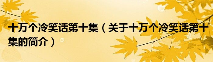 本文關于十萬個冷笑話第十集的簡介就講解完畢,希望對大家有所幫助。