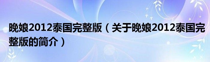 本文關于晚娘2012泰國完整版的簡介就講解完畢,希望對大家有所幫助。