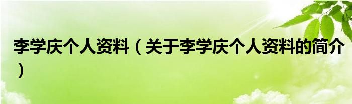 本文關于李學慶個人資料的簡介就講解完畢,希望對大家有所幫助。