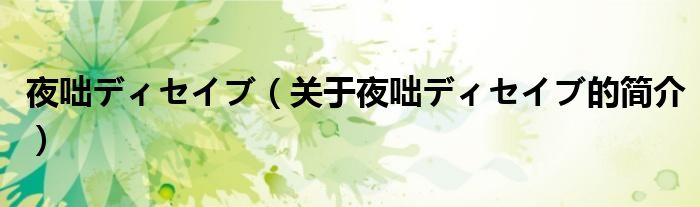 本文關于夜咄ディセイブ的簡介就講解完畢,希望對大家有所幫助。