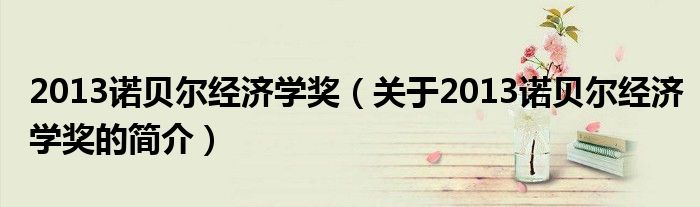 本文關于2013諾貝爾經濟學獎的簡介就講解完畢,希望對大家有所幫助。