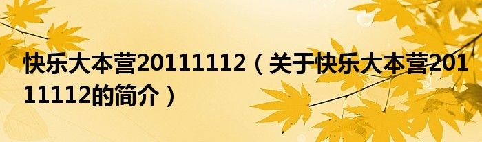 本文關(guān)于快樂大本營(yíng)20111112的簡(jiǎn)介就講解完畢,希望對(duì)大家有所幫助。