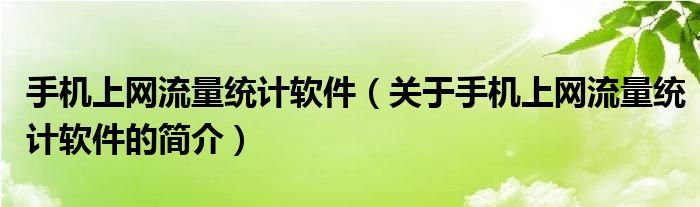 本文關于手機上網流量統計軟件的簡介就講解完畢,希望對大家有所幫助。