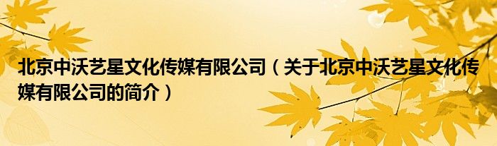 本文關于北京中沃藝星文化傳媒有限公司的簡介就講解完畢,希望對大家有所幫助。