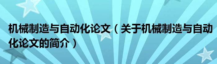本文關于機械制造與自動化論文的簡介就講解完畢,希望對大家有所幫助。