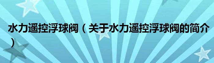本文關于水力遙控浮球閥的簡介就講解完畢,希望對大家有所幫助。