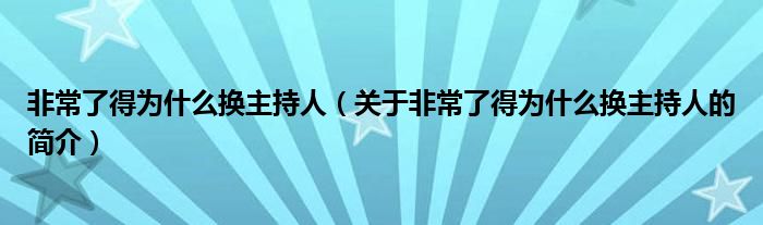 大家好,非常了得為什么換主持人,關于非常了得為什么換主持人的簡介很多人還不知道,現在讓我們一起來看看吧!