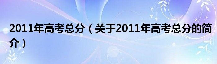 大家好,2011年高考總分,關于2011年高考總分的簡介很多人還不知道,現在讓我們一起來看看吧!