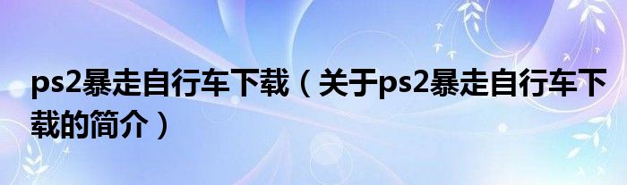 本文關于ps2暴走自行車下載的簡介就講解完畢,希望對大家有所幫助。