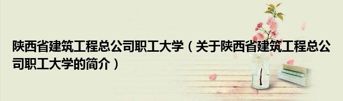 本文關于陜西省建筑工程總公司職工大學的簡介就講解完畢,希望對大家有所幫助。