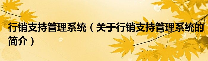 本文關于行銷支持管理系統的簡介就講解完畢,希望對大家有所幫助。