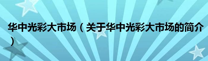本文關于華中光彩大市場的簡介就講解完畢,希望對大家有所幫助。