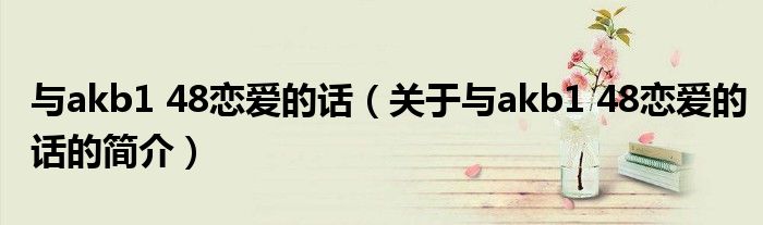大家好,與akb1 48戀愛(ài)的話,關(guān)于與akb1 48戀愛(ài)的話的簡(jiǎn)介很多人還不知道,現(xiàn)在讓我們一起來(lái)看看吧!