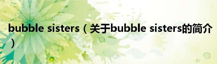 本文關于bubble sisters的簡介就講解完畢,希望對大家有所幫助。