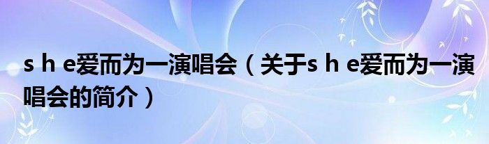 本文關于s h e愛而為一演唱會的簡介就講解完畢,希望對大家有所幫助。