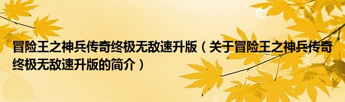 本文關于冒險王之神兵傳奇終極無敵速升版的簡介就講解完畢,希望對大家有所幫助。