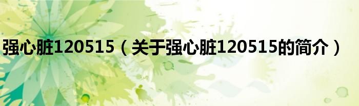 大家好,強心臟120515,關于強心臟120515的簡介很多人還不知道,現在讓我們一起來看看吧!