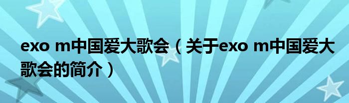 本文關于exo m中國愛大歌會的簡介就講解完畢,希望對大家有所幫助。