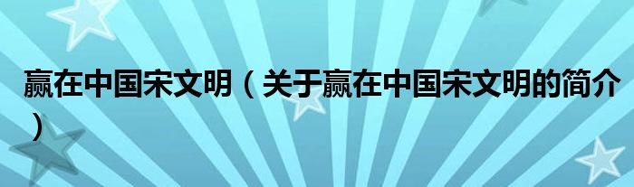 大家好,贏在中國(guó)宋文明,關(guān)于贏在中國(guó)宋文明的簡(jiǎn)介很多人還不知道,現(xiàn)在讓我們一起來(lái)看看吧!