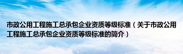 本文關于市政公用工程施工總承包企業資質等級標準的簡介就講解完畢,希望對大家有所幫助。