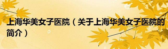 本文關于上海華美女子醫院的簡介就講解完畢,希望對大家有所幫助。
