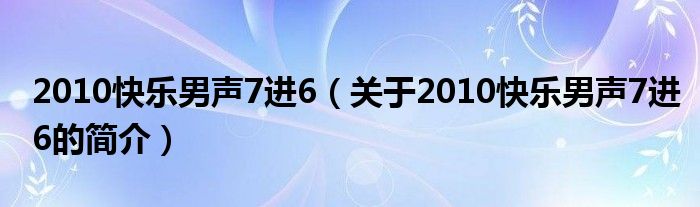 大家好,2010快樂男聲7進6,關于2010快樂男聲7進6的簡介很多人還不知道,現在讓我們一起來看看吧!