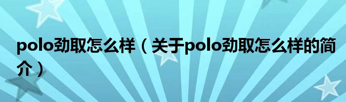 本文關于polo勁取怎么樣的簡介就講解完畢,希望對大家有所幫助。