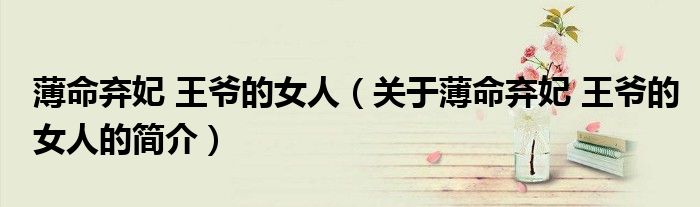 本文關于薄命棄妃 王爺的女人的簡介就講解完畢,希望對大家有所幫助。