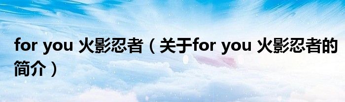 大家好,for you 火影忍者,關(guān)于for you 火影忍者的簡介很多人還不知道,現(xiàn)在讓我們一起來看看吧!