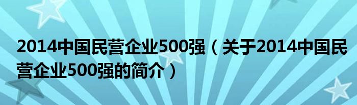 本文關于2014中國民營企業500強的簡介就講解完畢,希望對大家有所幫助。