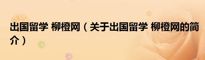 本文關(guān)于出國留學(xué) 柳橙網(wǎng)的簡介就講解完畢,希望對大家有所幫助。