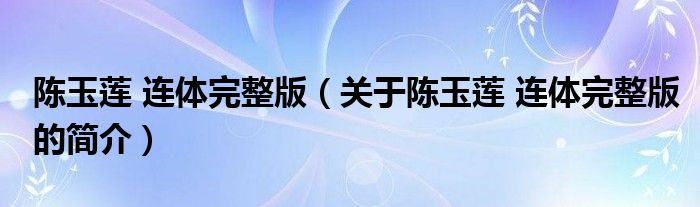 本文關(guān)于陳玉蓮 連體完整版的簡介就講解完畢,希望對大家有所幫助。