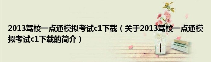本文關于2013駕校一點通模擬考試c1下載的簡介就講解完畢,希望對大家有所幫助。