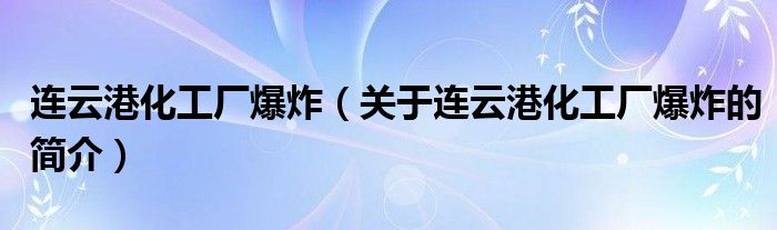 本文關于連云港化工廠爆炸的簡介就講解完畢,希望對大家有所幫助。
