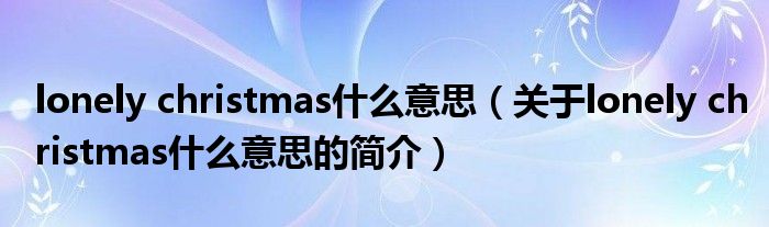 大家好,lonely christmas什么意思,關于lonely christmas什么意思的簡介很多人還不知道,現在讓我們一起來看看吧!