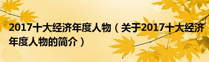 本文關于2017十大經濟年度人物的簡介就講解完畢,希望對大家有所幫助。