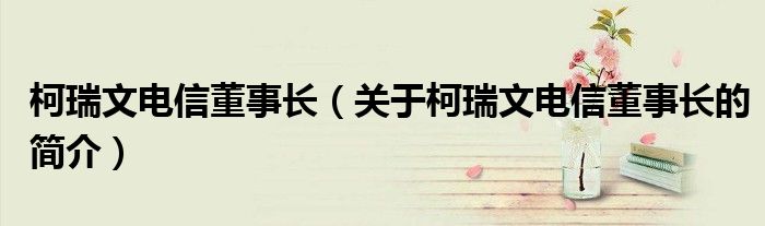 本文關于柯瑞文電信董事長的簡介就講解完畢,希望對大家有所幫助。