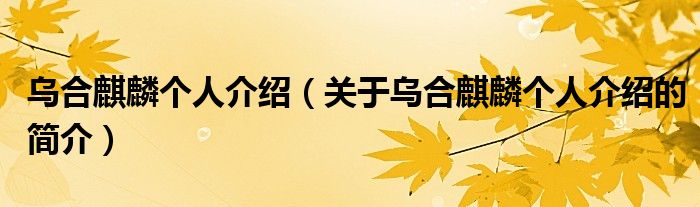 本文關于烏合麒麟個人介紹的簡介就講解完畢,希望對大家有所幫助。