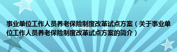 本文關于事業單位工作人員養老保險制度改革試點方案的簡介就講解完畢,希望對大家有所幫助。