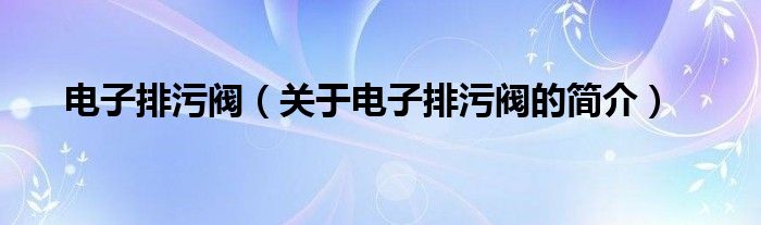 本文關于電子排污閥的簡介就講解完畢,希望對大家有所幫助。