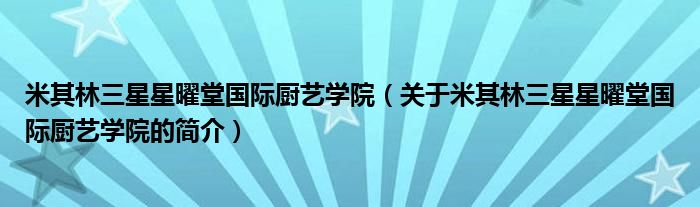 本文關于米其林三星星曜堂國際廚藝學院的簡介就講解完畢,希望對大家有所幫助。