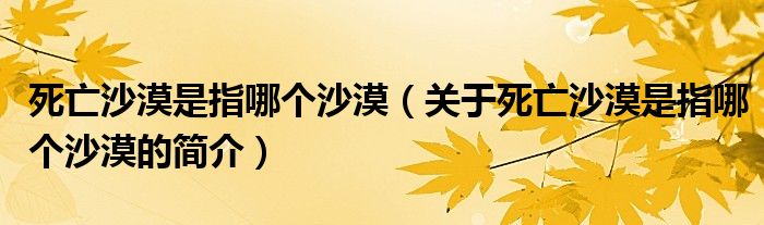 本文關于死亡沙漠是指哪個沙漠的簡介就講解完畢,希望對大家有所幫助。