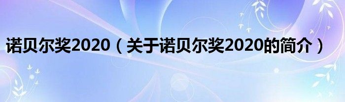 本文關于諾貝爾獎2020的簡介就講解完畢,希望對大家有所幫助。