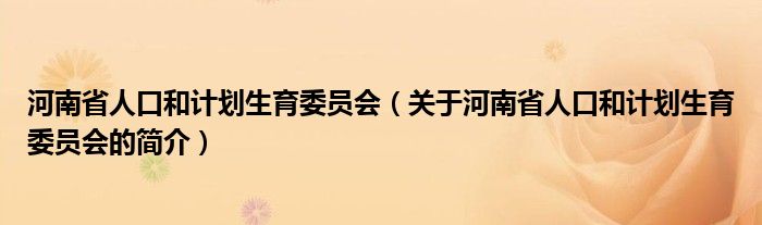 本文關于河南省人口和計劃生育委員會的簡介就講解完畢,希望對大家有所幫助。