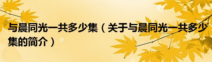 本文關(guān)于與晨同光一共多少集的簡(jiǎn)介就講解完畢,希望對(duì)大家有所幫助。