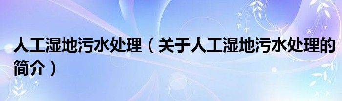 本文關于人工濕地污水處理的簡介就講解完畢,希望對大家有所幫助。