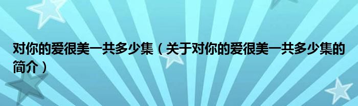 本文關于對你的愛很美一共多少集的簡介就講解完畢,希望對大家有所幫助。