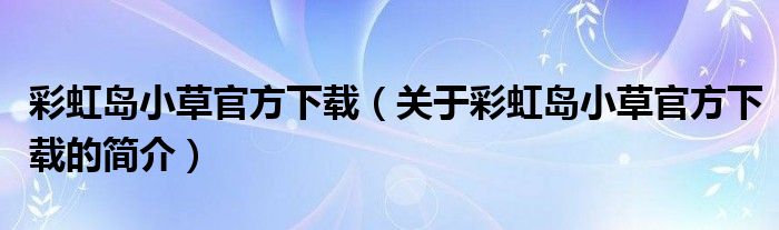 本文關于彩虹島小草官方下載的簡介就講解完畢,希望對大家有所幫助。