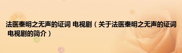 本文關于法醫秦明之無聲的證詞 電視劇的簡介就講解完畢,希望對大家有所幫助。