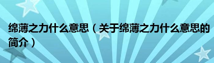本文關于綿薄之力什么意思的簡介就講解完畢,希望對大家有所幫助。